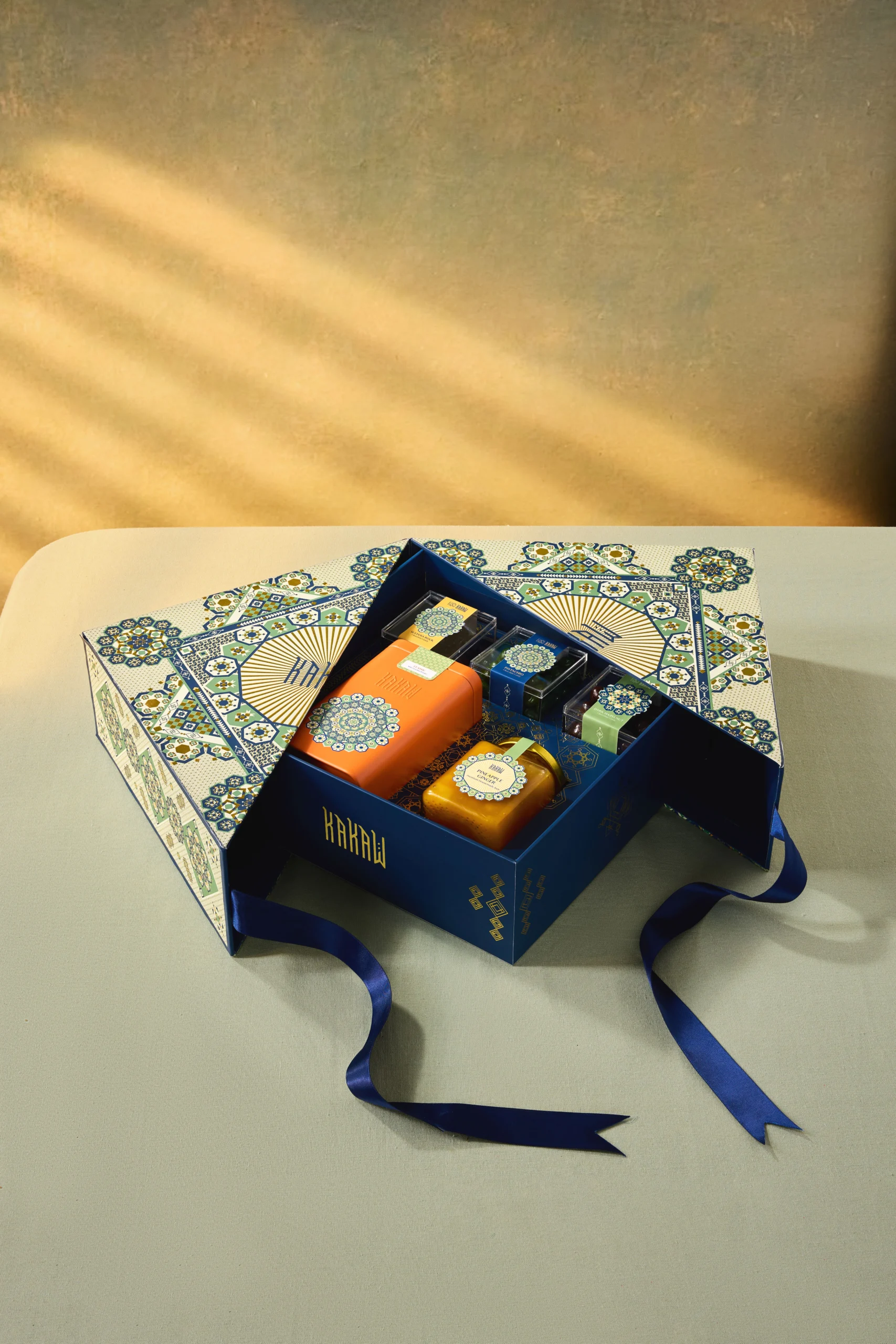 Where the art of giving meets the joy of Raya. Inspired by the iconic shape of ketupat and its timeless geometry, this collection brings thoughtful design, artisanal chocolate and warm moments together.