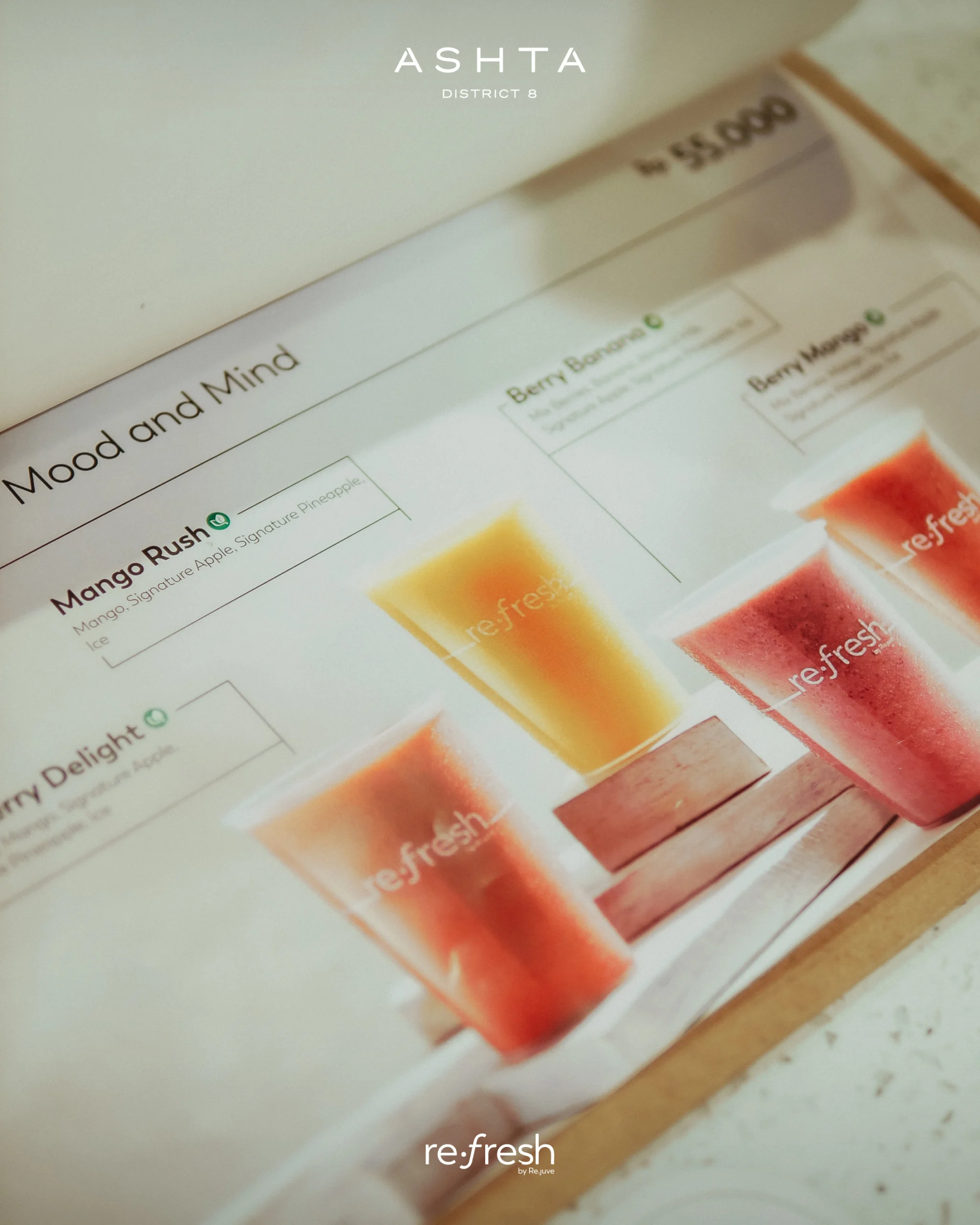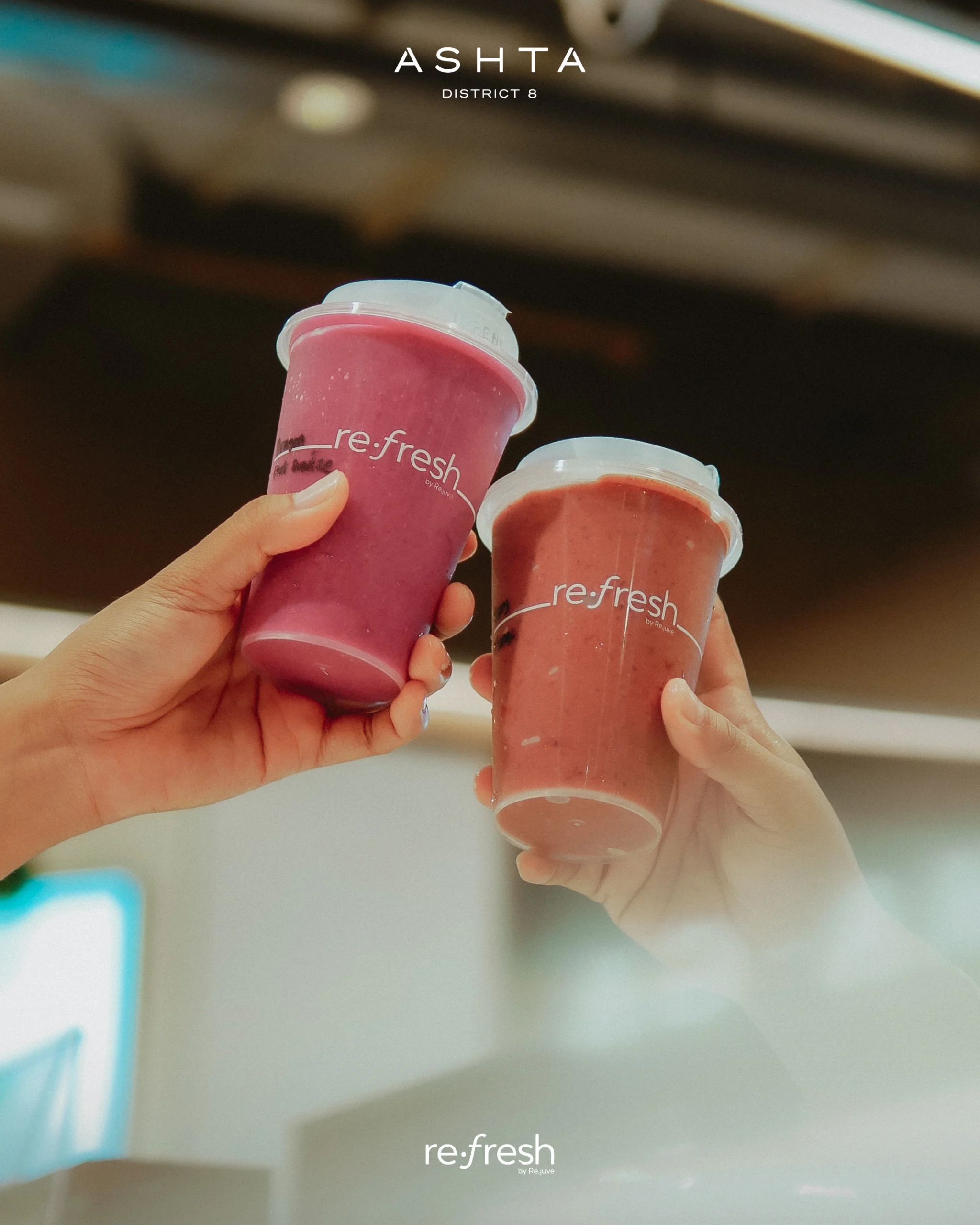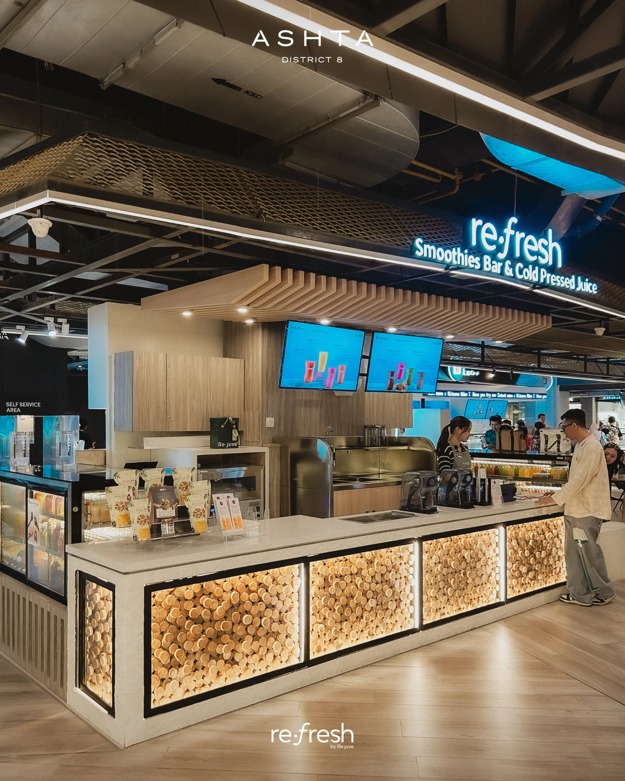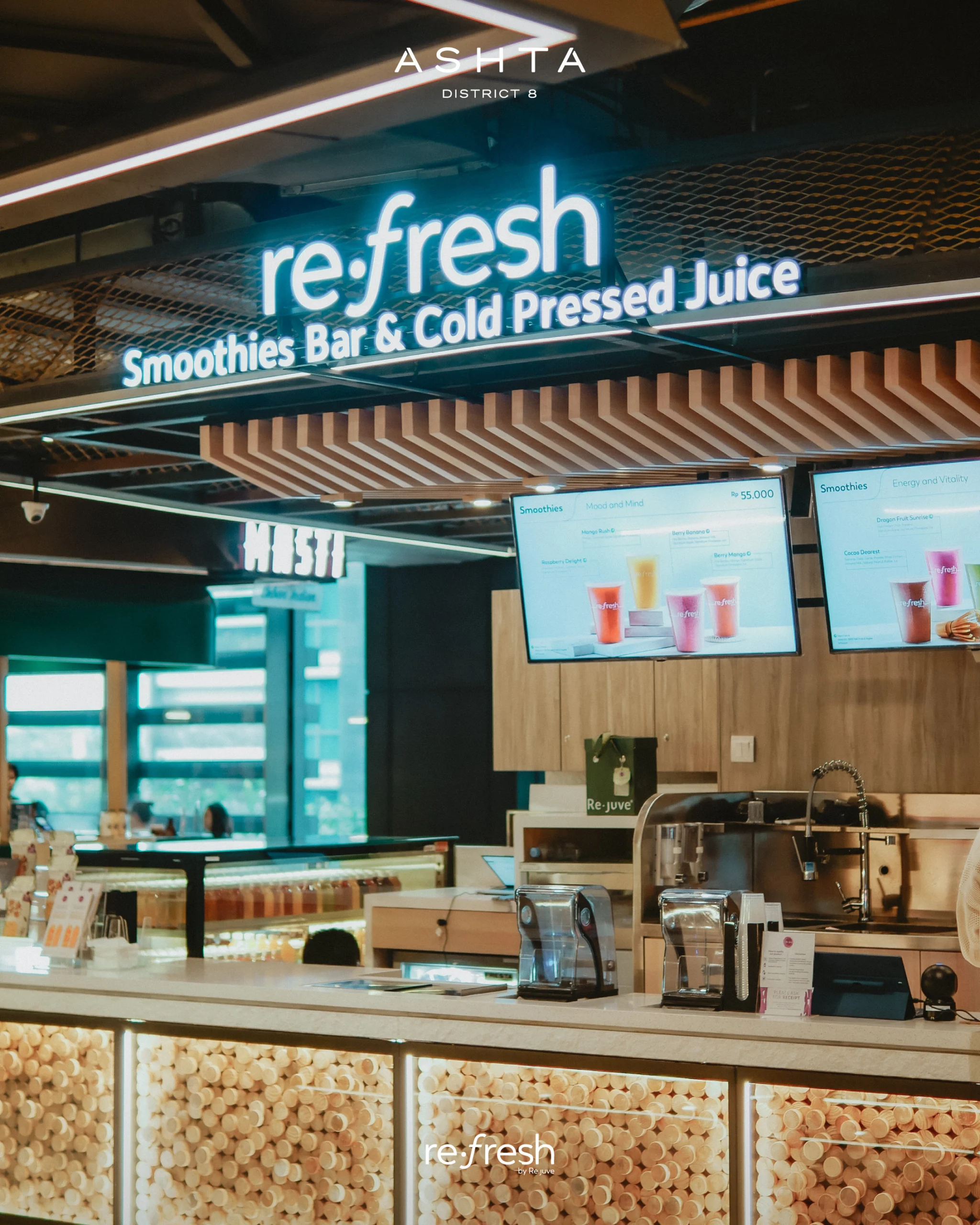 artisan smoothies, coolers, healthy indulgence, natural goodness, high-quality ingredients, nutrient-rich, wellness, enjoyment, refresh, Re.fresh by Re.juve, Re.juve, mall tenant, healthy drinks, fresh creations, vibrant experience, modern space, recharge, bustling life, better way to refresh, delicious drinks, pure ingredients, artificial additives, crafted with care, popular mall brand, mall directory, mall activities, mall shopping, mall entertainment, mall food court, mall lifestyle.